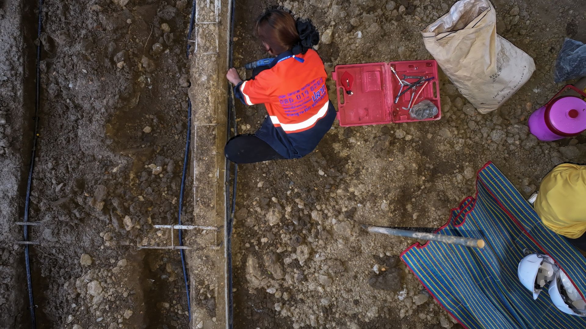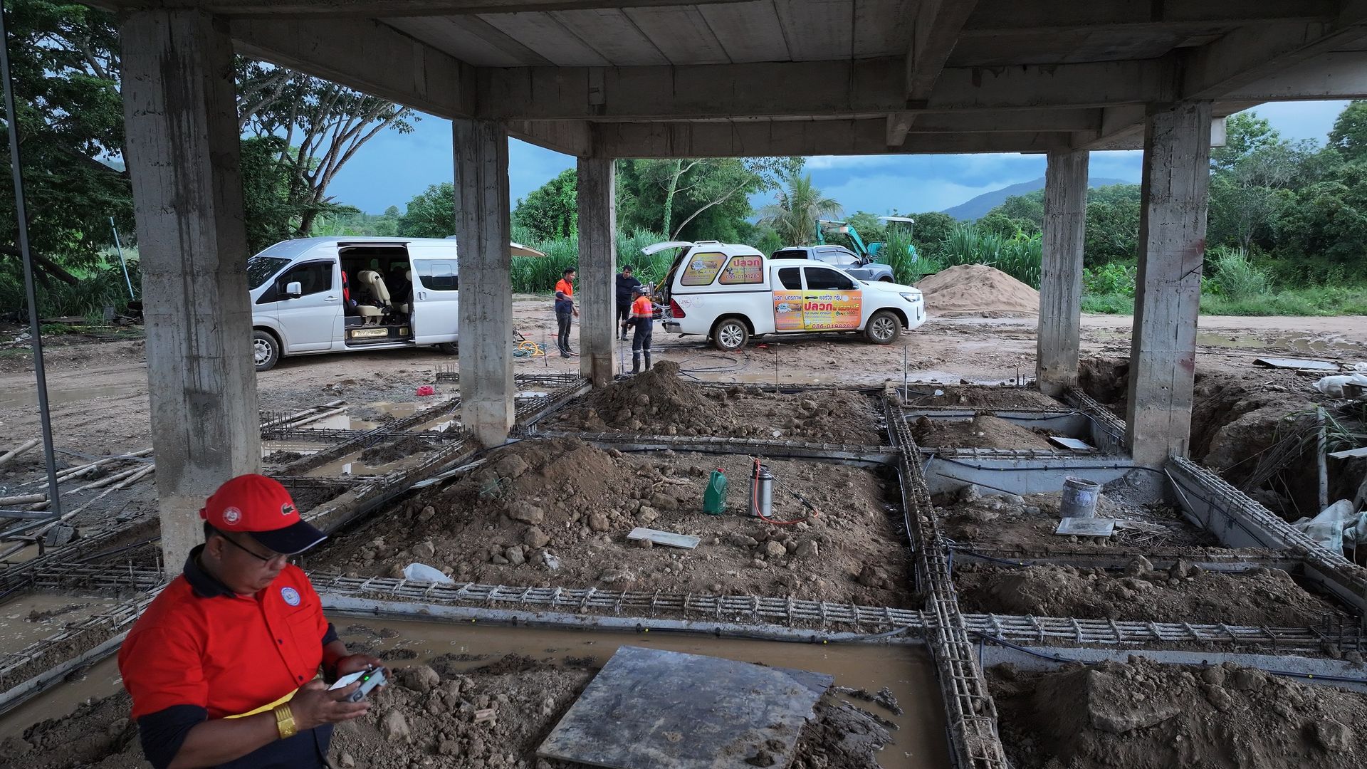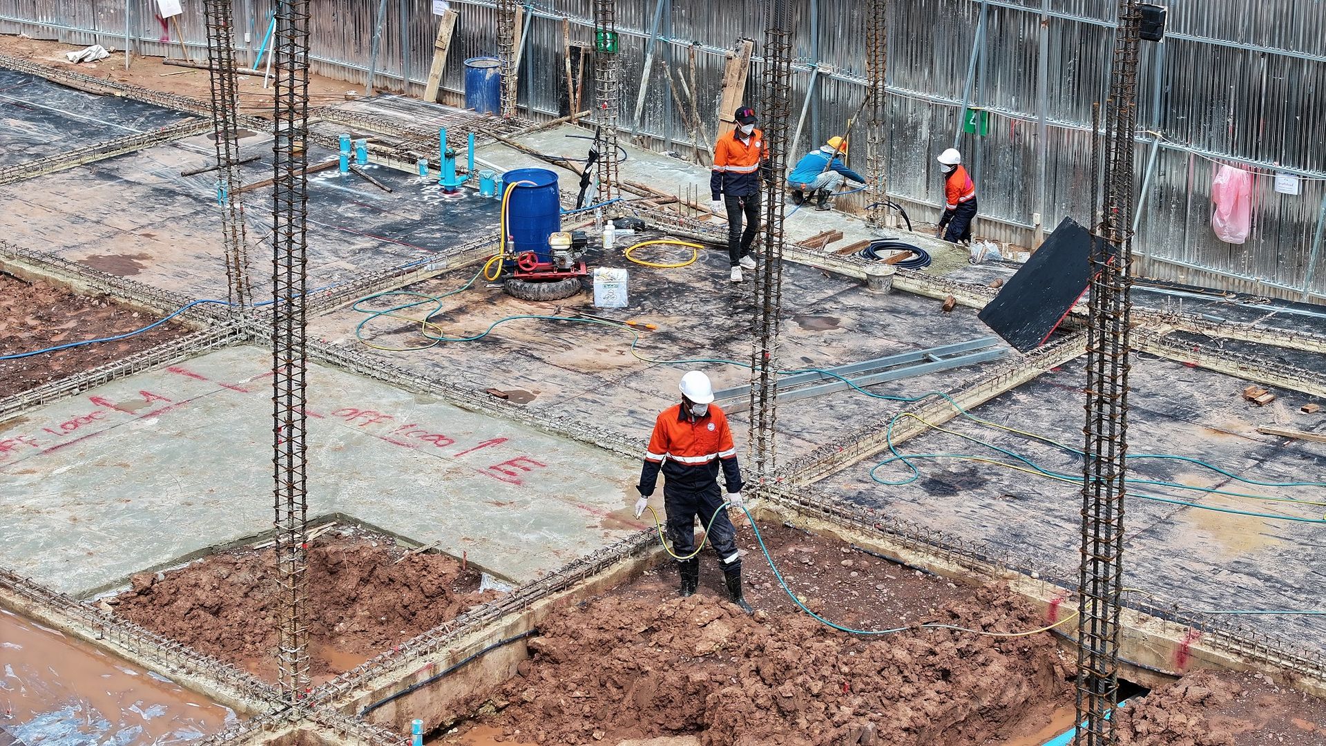 เจ้าหน้าที่จะเริ่มดำเนินการหลังจากทางฝ่ายก่อสร้าง ได้ทำการเทคานคอดินเสร็จเรียบร้อยแล้ว โดยเจ้าหน้าที่จะทำการวางท่อติดกับแนวคานด้านใน รอบตัวอาคาร ท่อน้ำยาเคมีจะมีวาล์วอัดน้ำยาเคมีไว้รอบอาคารเป็นช่วง ๆ สำหรับอัดน้ำยาเคมีเข้าไปใต้พื้นอาคารได้ตลอดอายุบ้าน